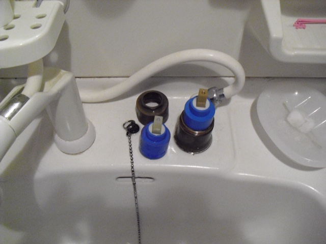 ↑↑写真のドライバーで、指している所のハンドルが普通は、回したら止まりますが、止まらないから水が流れっぱなし分解して、修理できるか見てみました蛇口内部がかなり傷んでいて、修理は無理です。