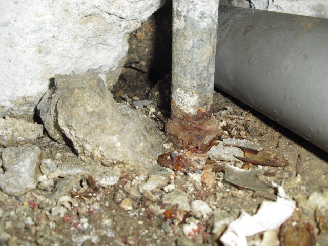 正確な漏水箇所を特定した後、床材を開口して床下空間に入りました。すると、水道管が経年劣化によりサビて穴が開いている状態を発見しました。長年の使用により配管が腐食し、そこから水が漏れ続けていたのです。